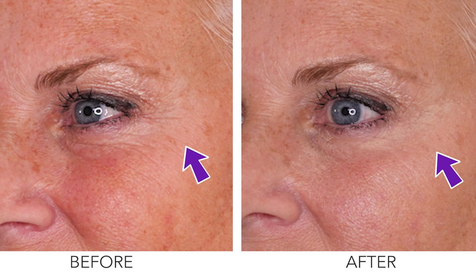 Years of sun damage and lines are gone! Her lids look lifted and the puffy eye-bags have vanished!